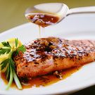 Pour off all but 1 Tbs. of the oil from the pan. Set the pan over medium heat, add the shallot and cook, stirring occasionally, until tender and translucent, about 3 minutes. Add the stock and demi-glace, bring to a boil and cook, stirring occasionally to scrape up any browned bits from the pan bottom, until reduced to 1/3 cup, about 3 minutes. Add the olives and parsley. Taste and season with salt and more demi-glace as needed. Pour the sauce over the salmon and serve immediately. Serves 4.