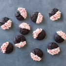 Line another baking sheet with parchment paper. Dip each cookie halfway into the melted white chocolate, then immediately sprinkle peppermint candies over the white chocolate. Place on the prepared baking sheet. If the white chocolate begins to harden, set the bowl over simmering water for up to 1 minute to remelt. Let the cookies firm up for at least 15 minutes before serving. Makes about 2 dozen cookies.