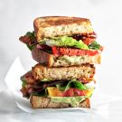 One of the highlights of summer is eating a BLT sandwich, preferably made with gorgeous heirloom tomatoes from your garden or the farmers’ market. Here we take this warm weather staple up a notch by topping it with a garlicky aioli that gets its gorgeous green color from fresh basil. The aioli recipe makes enough for several sandwiches, so multiply the sandwich ingredients if you have a crowd to feed. The leftover aioli is also great dolloped on steamed or roasted vegetables or stirred into your favorite summery soup.