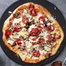 When cherry tomatoes reach their peak in summer, we like to enjoy them every way we can, including on a simple pizza that showcases their fresh flavor. Here we round out the toppings with mushrooms and red onions plus two kinds of cheese. Before adding the pizza to the pizza stone, give it plenty of time to preheat in the oven. That’s the key to producing a crisp, well-browned crust.
