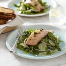Poached Salmon over Greens with Caper Vinaigrette