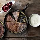 Pour the mixture into the prepared fry pan and bake until a skewer inserted into the middle comes out clean, about 45 minutes. Transfer the pan to a wire rack and let cool to room temperature.