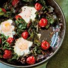 Polenta, Fried Eggs, Greens and Blistered Tomatoes