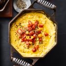 Cast-iron cookware isn’t just for simmering winter stews and braises—it's also great for preparing meals throughout the year. Here, two quintessential summer ingredients, fresh sweet corn and cherry tomatoes, are lightly charred on a stovetop grill pan and served over creamy polenta, which is cooked in a Dutch oven. Serve this comforting dish as a meatless main or pair with steak, lamb or chicken.