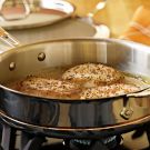 Return the pork chops and any juices from the plate to the pan. Simmer until the pork is heated through, about 1 minute. Season with salt and pepper. Divide the pork chops and sauce among 4 warmed plates and serve immediately. Serves 4.