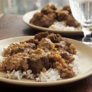 Divide the steamed rice, pork and sauce among warmed plates and serve immediately. Serves 6 to 8.