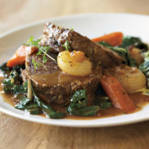 Mushroom demi-glace adds depth of flavor to this beef brisket, which is braised to tender perfection in a slow cooker. Carrots and cipollini onions, a sweet Italian variety, simmer alongside the meat.