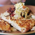 Flavored with tart apples, this simple but elegant pancake is the perfect accompaniment to our Seared Duck Breast with Pinot Noir Sauce. The pancake is sliced into wedges, which make attractive garnishes on the plate. The potato will soak up some of the fruity sauce from the duck.