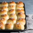 Preheat an oven to 350°F (180°C). Bake the rolls until golden brown, 25 to 30 minutes. Brush with melted butter, sprinkle with flaky sea salt and serve. Makes 24 rolls; serves 12.