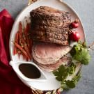 A classic centerpiece for holiday feasts, juicy prime rib always makes a grand impression. Here we use a boneless rib-eye roast, an exceptionally tender cut with generous marbling and rich, beefy flavor. First it’s roasted in a very hot oven for 30 minutes so an appealing brown crust forms, then cooked low and slow to keep the meat moist. Our quick gravy incorporates the savory pan drippings and red wine along with pomegranate juice for a tangy punch.