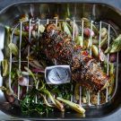 Scatter the fennel, spring onions and radishes in the bottom of a roasting pan in a single layer. Place a roasting rack on top of the vegetables and put the tenderloin on the rack. Brush the pork with the balsamic vinegar.