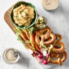 Transfer to a bowl and serve immediately with gherkins, radishes, pickled carrots and soft pretzels alongside. Serves 2 to 4.