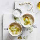 This easy vegetarian soup showcases the subtle flavor of fennel and gets a hint sweetness from the addition of an apple. Olive oil, which is both pureed with the fennel and apple and drizzled on at the end, lends richness and a fresh aroma.