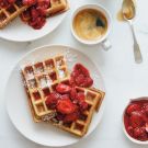 Raised Waffles with Strawberry-Rhubarb Compote