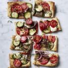 In this fresh take on ratatouille, the Provençal vegetable stew, we arrange the traditional components of the dish on a sheet of puff pastry, add a dollop of herbed goat cheese and bake until golden brown. A drizzle of balsamic vinegar provides the finishing touch. Serve as a hearty appetizer or as a side dish to a bistro-style meal.
