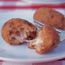 Serve the croquettes while the mozzarella core is still hot. They may be eaten with a knife and fork, but for the traditional telephone-cord effect, they should be grasped with a paper napkin and eaten out of hand. Makes about 24 croquettes.