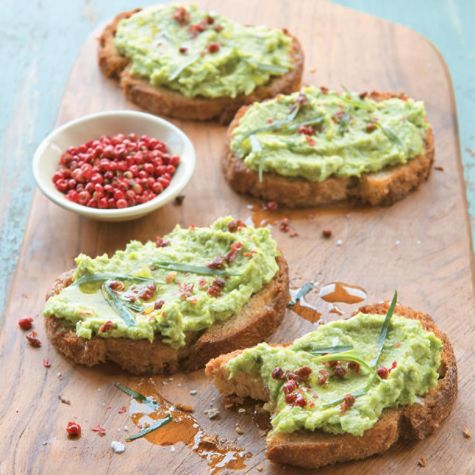 Ricotta and Pea Crostini with Tarragon and Pink Peppercorns