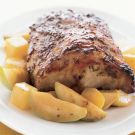 Transfer the pork loin to a carving board, cover loosely with aluminum foil and let rest for 10 minutes. Carve into slices 1/2 inch thick. Serve hot with the rutabagas, apples and pan juices. Serves 4.