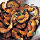 Transfer the squash wedges to a large bowl. Add the minced chili and the cilantro and toss to coat well. Arrange the squash on a warmed platter, garnish with the lime wedges and serve immediately. Serves 4.