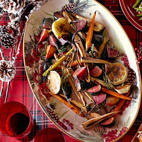 Transfer to the oven and roast, rotating the baking sheets 180 degrees halfway through the cooking time, until the vegetables are nicely browned and tender, 30 to 40 minutes. Toss all the vegetables together and transfer to a platter. Drizzle with more olive oil and serve immediately. Serves 8.