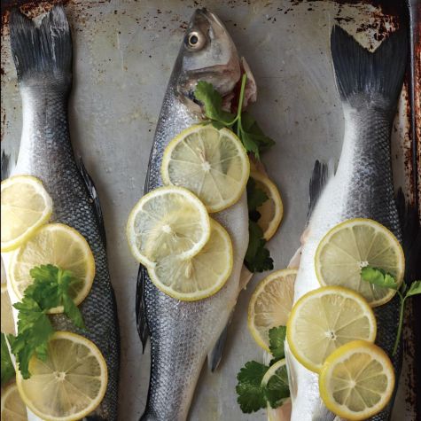 Branzino, also known as Mediterranean sea bass, is low in fat but has a lovely buttery flavor and silky texture. It is delicious simply roasted with lemon and herbs.