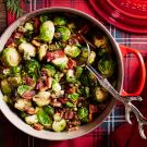 Slivers of crisp bacon add salty and savory notes to brussels sprouts in this easy side dish that’s worthy of a wintery holiday feast, but also easy enough to make for a weeknight dinner.