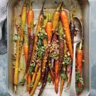 Here, carrots are treated to a fennel-infused olive oil, roasted and then glazed with honey and vinegar when they are piping hot. Purple, gold and red rainbow carrots make for a beautiful presentation, but if you can’t find them, conventional orange carrots will still be delicious.