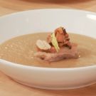 Roasted Chestnut Soup with Wild Mushrooms and Crispy Pork Belly
