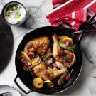 Roasted chicken with crisp skin and juicy meat makes a comforting dinner and fills your kitchen with wonderful aromas. Here, lemon and white wine add pops of acidity, while fennel lends freshness and a subtle anise flavor. We use a cast-iron fry pan, which sears the chicken skin beautifully. Before adding the legs to the pan, be sure to pat them thoroughly dry so they’ll brown well. Pair this dish with our Pizza Stone Pita with Herbed Labneh.