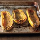 Roast the squash, uncovered, until tender and browned in spots, 45 to 55 minutes. Transfer to a serving platter, garnish with the sage sprigs and serve immediately. Serves 4.