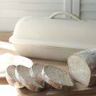 The dough in this recipe is very moist, so work with it on a generously floured surface using well-floured hands. After each proofing stage, the dough does not need to be punched down or worked with very long. Simply turn it out onto the floured surface and work the dough gently with your hands until it is soft and smooth. Then return it to the bowl for proofing. For the final rise, place the dough in a stoneware baker.