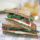 For this recipe, the ingredients in classic pesto have been altered to make a zesty sandwich spread with considerably fewer calories. The olive oil is reduced to make the sauce thicker. Reserve leftover pesto to season soups or pasta or for future sandwiches.