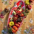 When ready to serve, arrange the peppers and tomatoes on a platter. Cut the burrata into wedges and nestle them in the peppers. Tuck the prosciutto slices around the platter. Season with salt and pepper, drizzle with some olive oil, and sprinkle with the herbs. Serve immediately. Serves 4 to 6.