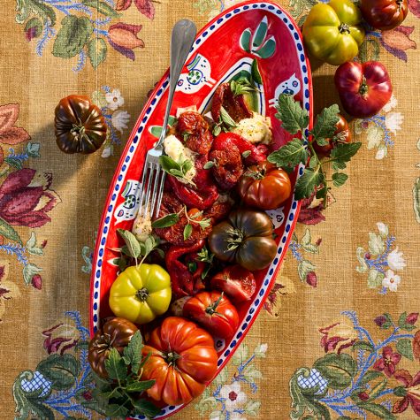Please complete the fields below, and we'll send your friend an email from you with a link to Roasted Red Peppers and Tomatoes with Prosciutto and Burrata.