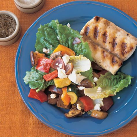 This vegetable salad, inspired by Spanish escalivada, can be served warm from the oven but is equally delicious at room temperature. If you like, serve alongside grilled fish or top the vegetables with anchovies, arranging them on the salad as you would on a classic Caesar. Leftovers are delicious cooked into a frittata.