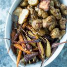 Arrange the carrots and sunchokes in a single layer on separate nonstick baking sheets. Transfer to the oven and roast for 10 minutes. Stir the vegetables, then rotate the baking sheets from top to bottom and 180 degrees. Roast for 10 minutes more and stir again. After 20 minutes, the vegetables should be almost done; they should be soft but not falling apart and still have a little bite to them. Continue roasting as needed, checking and stirring every 5 minutes.