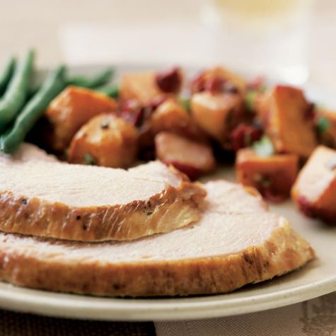 Turkey is very high in protein and low in both total fat and saturated fat. Roasting a turkey breast is much easier than roasting the whole bird. It also lets you cook the white meat perfectly, rather than have it dry out while waiting for the dark meat to finish cooking. The breast is easy to turn, allowing it to self-baste as it roasts. Always buy a fresh turkey breast to ensure the most succulent result. Roasted turkey breast is versatile, perfect for hot or cold slices or for sandwiches and salads.