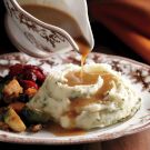Here, a food mill is used to puree roasted vegetables, which provide the foundation for a sauce that is delicious poured over mashed potatoes.