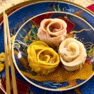 “They’re almost too pretty to eat!” says cookbook author Kristina Cho about these beautiful rose-shaped siu mai, which are part of her Lunar New Year menu. Since this recipe requires assembling three dumpling wrappers into one rose dumpling, you’ll want to make sure the wrappers are on the thinner side so you don’t lose the delicate definition of the petals. Kristina prefers to steam these siu mai rather than panfry them, explaining, “It’s the gentlest way to cook dumplings, and it preserves all the work you put into shaping each dainty rose.”
