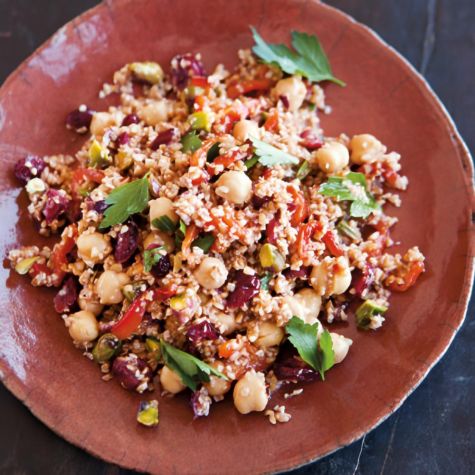 • Bulgur Salad with Roasted Peppers, Chickpeas and Pistachios