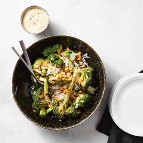 • Roasted Broccoli Caesar with Corn Nuts and Parm