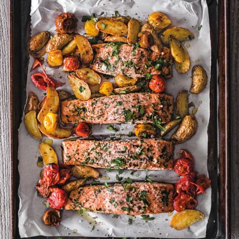 Salmon Provencal with Fingerling Potatoes and Cherry Tomatoes