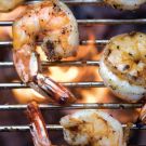 Working in batches, grill the shrimp directly over medium-high heat, turning once, until bright pink and nicely charred, 2 to 3 minutes per side. Transfer the shrimp to a platter and cover loosely with aluminum foil.