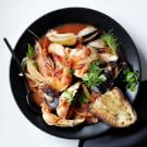 Transfer the cioppino to individual bowls. Garnish with parsley leaves and the reserved fennel fronds. Serve immediately with toasted sourdough bread. Serves 4.