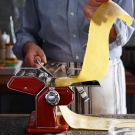 This recipe yields a fairly wet pasta dough, so be sure to incorporate a bit more flour when rolling it out. If using a pasta machine, roll it out on the widest setting 3 to 5 times, dredging the dough in flour and folding it into thirds each time. If rolling it out by hand, do so on a well-floured wooden board. Then use the dough to make Sara Jenkins’ Lasagna (see related recipe at left), a favorite at her New York City trattoria, Porsena.