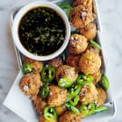 A perfect cocktail hour snack, these crunchy cornbread balls get a lift from fresh and lightly brined jalapeños, plus a sweet-and-tangy syrup made from Trisha Yearwood’s Summer in a Cup mix. We recommend using a mandoline for slicing the jalapeños used for garnish, but a sharp knife will also do. Make sure to save a few of these fritters for yourself before putting them out for guests — they tend to disappear quickly.