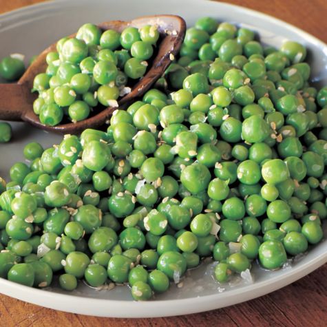 Add the peas, salt and pepper, and sauté, tossing and stirring occasionally, until the peas are just tender, 3 to 4 minutes. Sprinkle with the toasted sesame seeds and stir well. Taste and adjust the seasonings. Serve immediately. Serves 4.