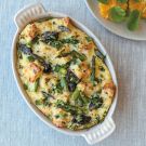Savory Bread Pudding with Spring Vegetables and Herbs