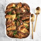A great dish for easy entertaining—you can assemble everything the night before and pop it in the oven about 45 minutes before you want to serve it—this savory French toast bake gets its richness from a combo of Parmesan and nutty Gruyère cheese. Challah and brioche have fluffy textures that absorb the egg custard perfectly.