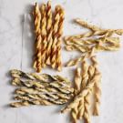 Just the thing to pair with a glass of wine or bubbly, these fun appetizers are super simple to make because they rely on store-bought puff pastry. Keep a box in your freezer so you can whip up these savory twists at a moment’s notice. Choose one of the toppings from the suggested list below; the quantities are for a single batch of twists.